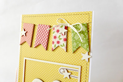 Na jednu stranu pohľadnicového základu som nalepila papier z kolekcie It's a girl od Carta Bella, menší štvorec som ozdobila papiermi a nálepkami z rovnakej kolekcie: